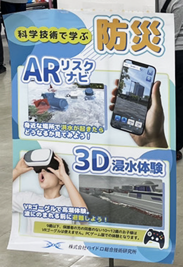当社ブースでは、浸水時の状況をリアルに体感できる「ARリスクナビ」や、高潮が発生した港での避難を疑似体験できる「VR 3D浸水体験」など、楽しみながら防災を学べる教育コンテンツを紹介しました。
